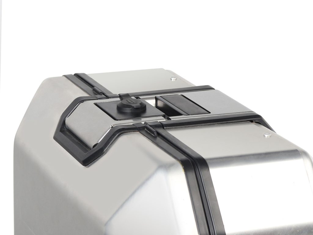 Unikátní integrovaný mechanismus zámku a madla umožňuje jednoduché ovládání jednou rukou a snadnou demontáž z motocyklu.