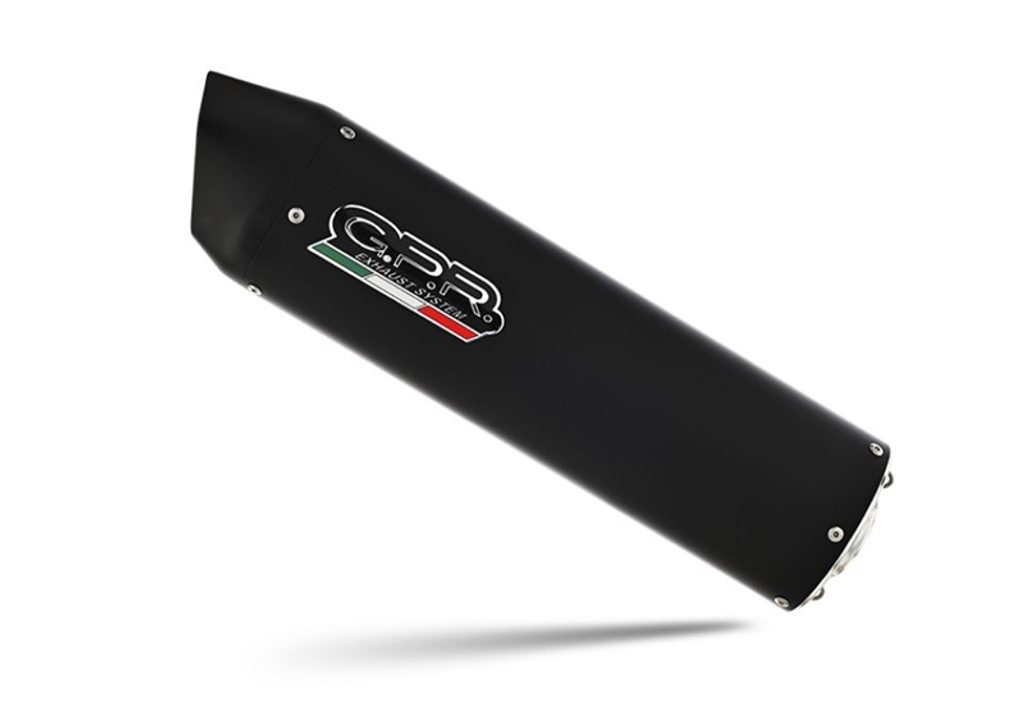 Dvojitá koncovka výfuku Slip-on GPR FURORE NERO Y.44.CAT.FUNE Matná černá zahrnuje odnímatelné db killery, spojovací svody a katalyzátory