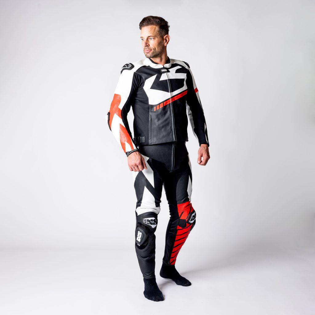 ACE 1.0 KOŽENÁ DVOUDÍLNÁ KOMBINÉZA ČERNO-BÍLO-ČERVENÁ