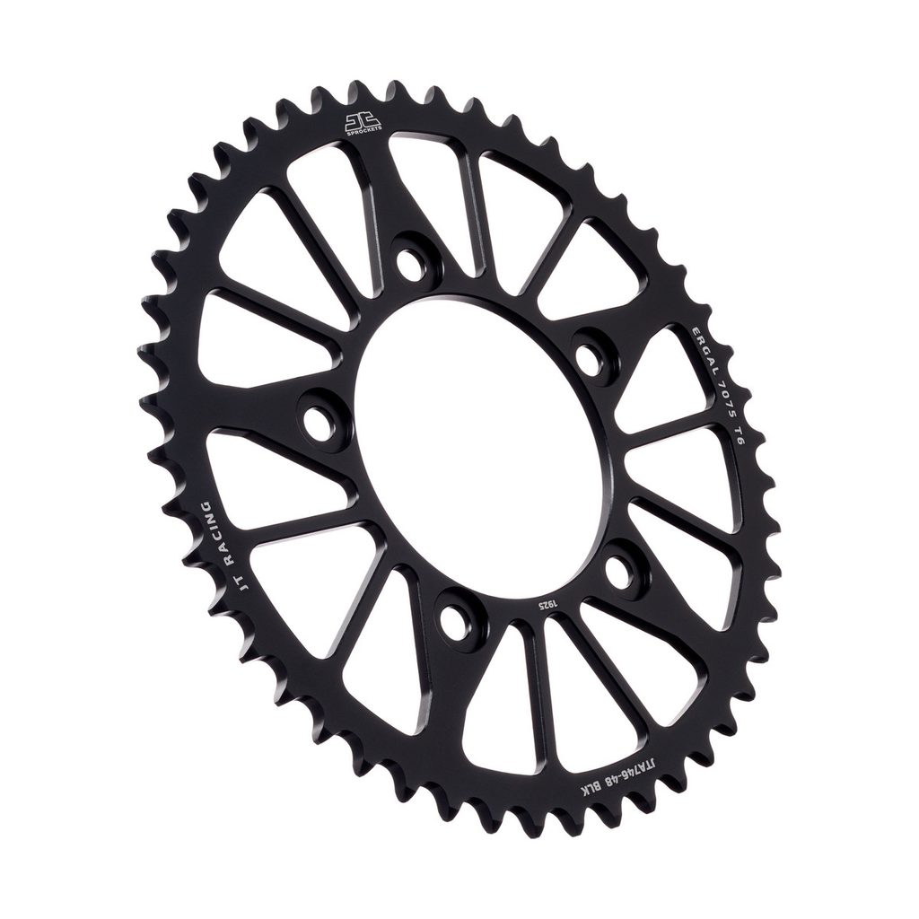 JT používá výhradně ty nejkvalitnější materiály. Pro závodní lehké rozety je to hliníková slitina letecké kvality 7075-T6, pro přední pastorky extrémně pevná slitina SCM420 (chrom-molybdenová ocel) a pro zadní ocelové rozety jako jediný výrobce používá ultra odolnou uhlíkovou ocel C49.