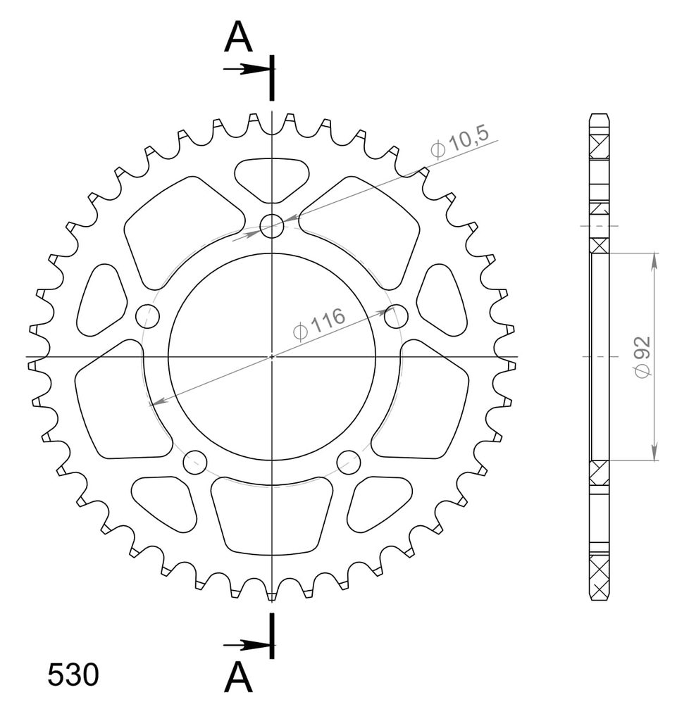 Hliníková řetězová rozeta SUPERSPROX RAL-489:41-BLK černý 41 zubů, 530