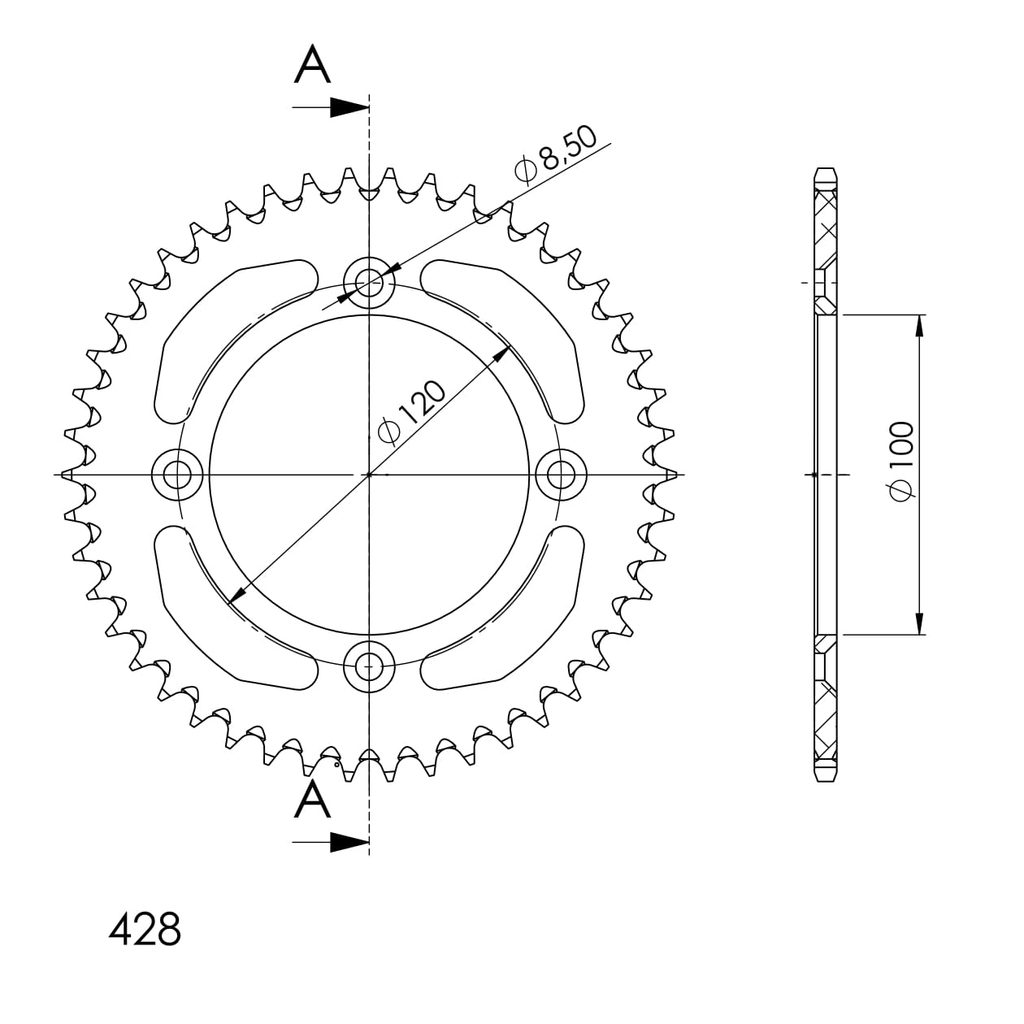 Hliníková řetězová rozeta SUPERSPROX RAL-998:46-BLK černý 46 zubů, 428