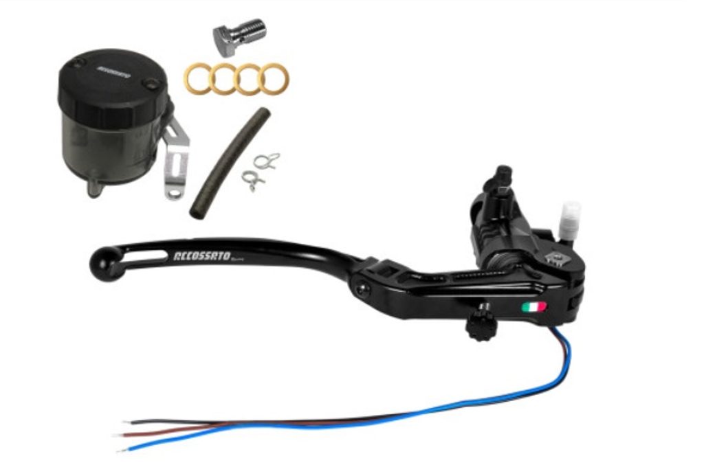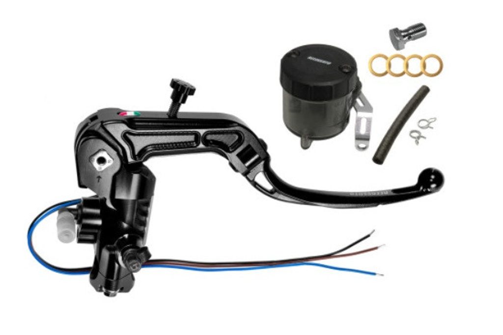 Homologovaný radiální brzdový hlavní válec ACCOSSATO RB086N se sklopnou páčkou, včetně sady brzdové nádobky