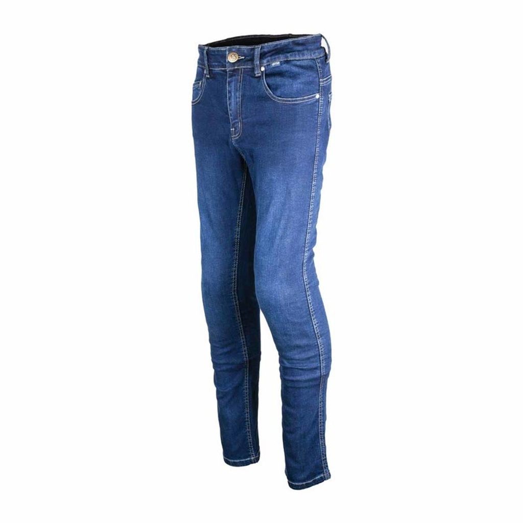 Pohodlné džíny s dámským slim střihem a civilním vzhledem, které skvěle padnou a zvýrazní dámskou postavu. Díky příměsi elastanu se dobře přizpůsobí a neomezují pohodlí jezdce na motocyklu. Bezpečnost zajišťují panely z kevlaru a CE certifikované chrániče na impaktních místech.