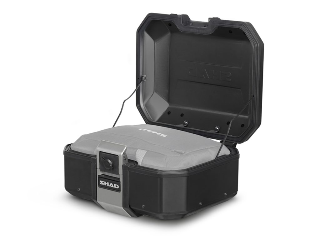 Kompletní sada černých hliníkových kufrů SHAD Terra obsahuje černý vrchní kufr TR37 s kapacitou 37L včetně plotny, pravý černý hliníkový kufr TR47 s kapacitou 47L a levý černý hliníkový kufr TR36 s kapacitou 36L kvůli umístění výfuku. Levý kufr tak nebude vyčnívat. Sada obsahuje vše, co potřebujete k montáži obou kufrů.