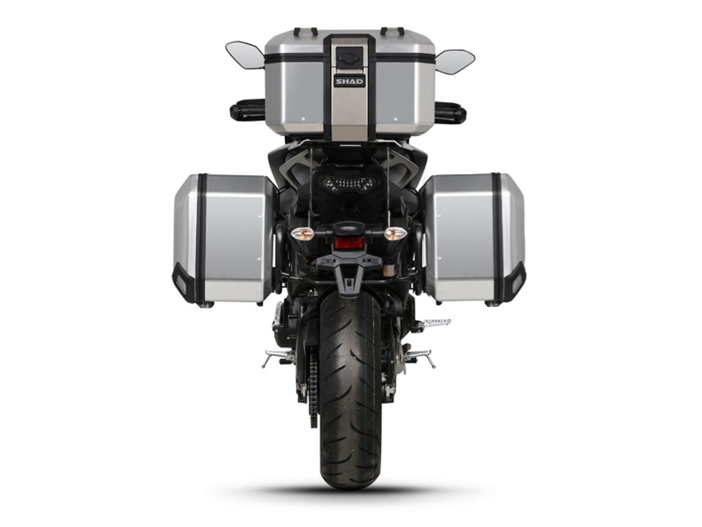 Kompletní sada černých hliníkových kufrů SHAD Terra obsahuje černý vrchní kufr TR37 s kapacitou 37L včetně plotny, pravý černý hliníkový kufr TR47 s kapacitou 47L a levý černý hliníkový kufr TR36 s kapacitou 36L kvůli umístění výfuku. Levý kufr tak nebude vyčnívat. Sada obsahuje vše, co potřebujete k montáži obou kufrů.