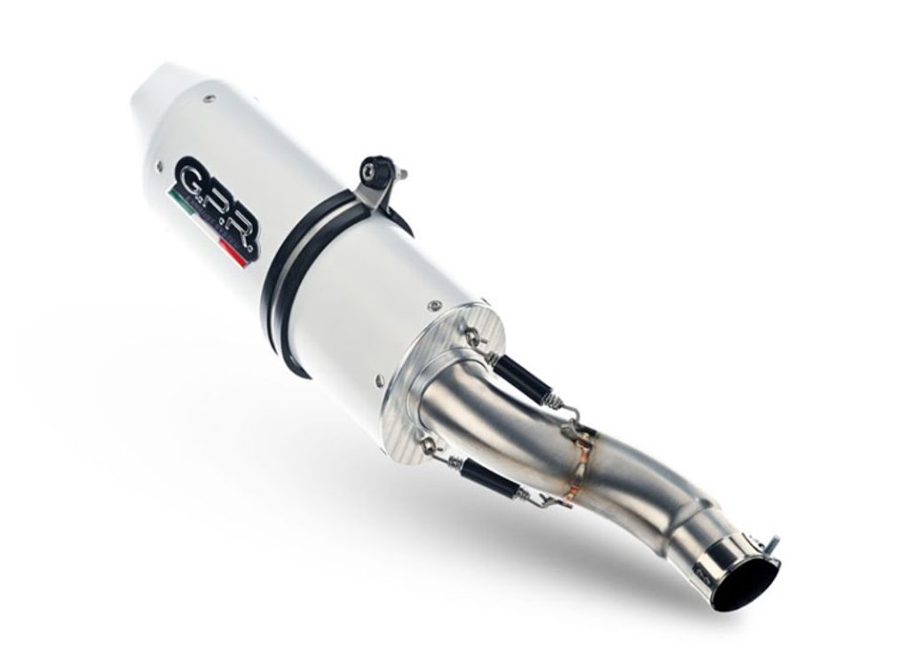 Koncovka výfuku Slip-on GPR ALBUS EVO4 E4.A.72.CAT.ALBE4 Lesklá bílá zahrnuje spojovací svod, odnímatelný dB killer a katalyzátor
