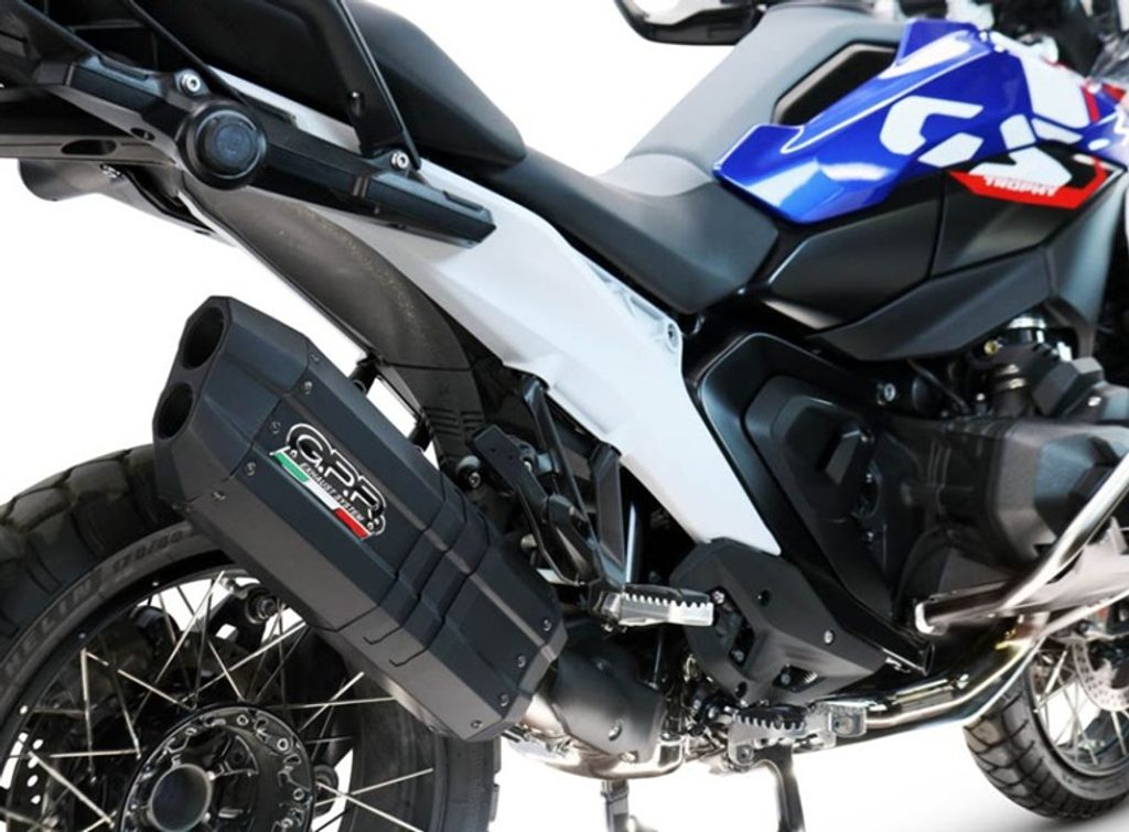 Tlumič výfuku Hyper Black DUAL Titanium, vyrobený ze skutečného titanu s černou keramickou úpravou, s dvojitou výstupní koncovkou a karbonovou koncovkou vytištěnou technologií 3D – první svého druhu na světě. Klasický vzhled, který dostal nový život díky technologii GPR. Eliptický tvar 100 × 130 mm, ideální volba pro enduro a cestovní motocykly.