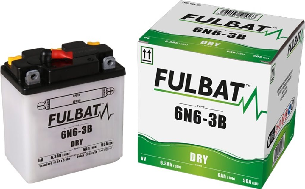 Řada DRY suchých baterií nabízí nesrovnatelný výběr 6V a 12V modelů. Používá se v řadě motorek, hlavně v čínských skútrech. Dodává se suchá, nenaplněná kyselinou, takže ji lze dlouho skladovat, aniž by potřebovala kontrolu či dobíjení. Před prvním použitím je potřeba ji naplnit kyselinou (elektrolytem). Ta je dodávána jako součástí balení, ve správném množství.