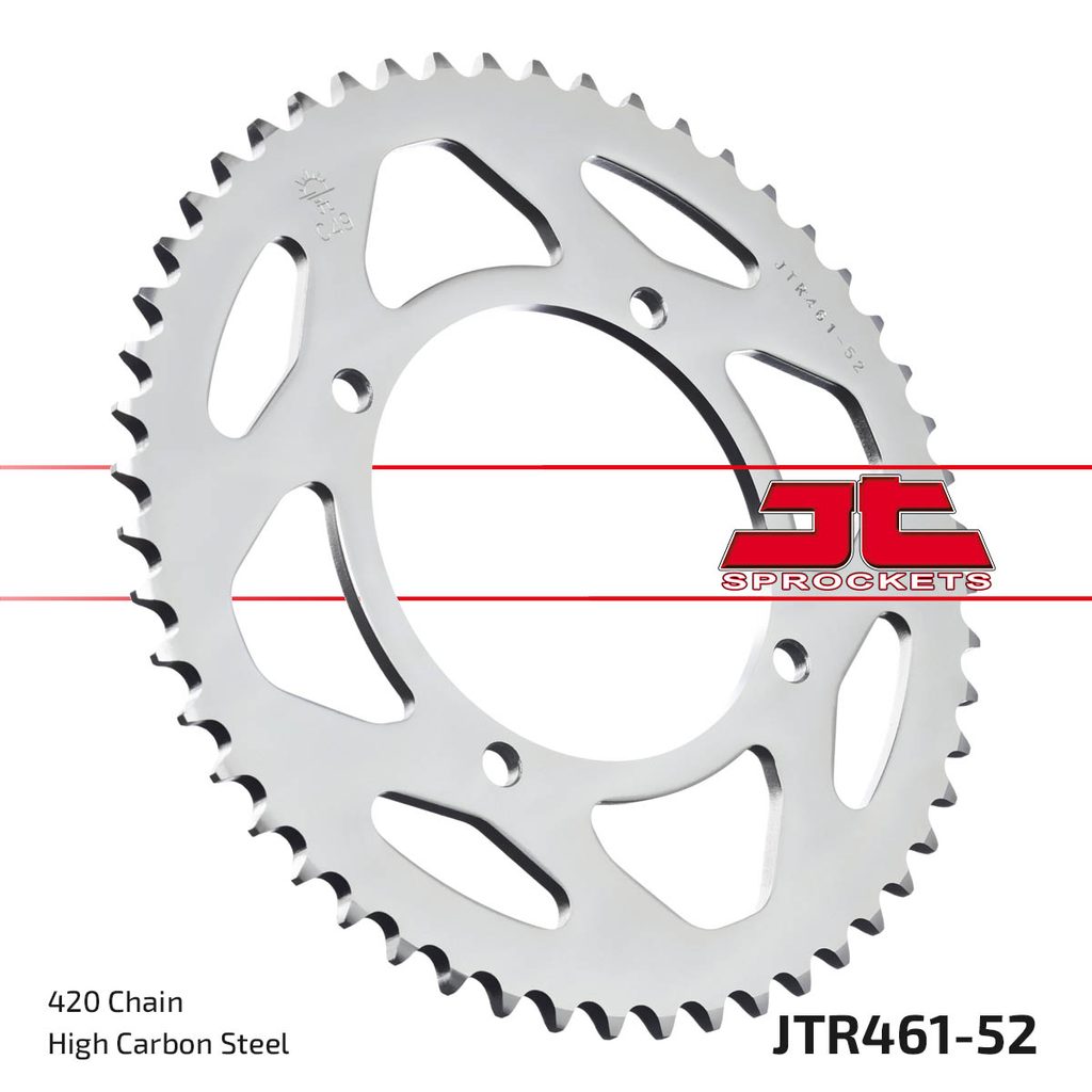 Ocelové zadní rozety JT Steel jsou vyráběny výhradně z nejkvalitnější uhlíkové oceli C49. Sortiment JT Steel nyní zahrnuje více než 2 500 dílů pro všechny motocykly a čtyřkolky (ATV).