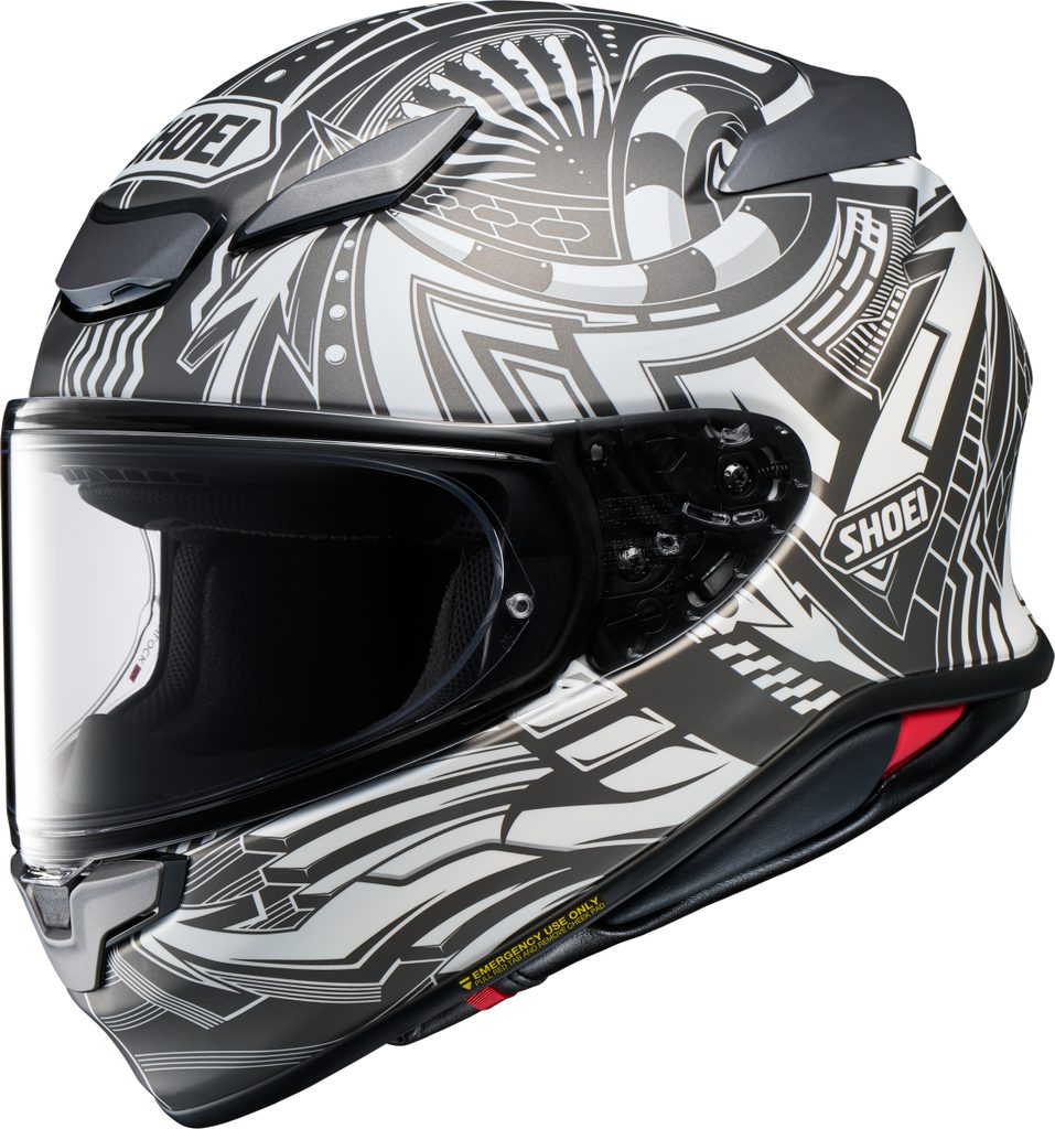 Štít CWR-F2, nově vyvinutý pro SHOEI NXR2, s dvourozměrným tvarováním umožňuje nezkreslené a velmi přirozené vidění. Výztuhy na horním a dolním okraji štítu zvyšují torzní tuhost a zajišťovací mechanismus, nyní umístěný uprostřed, zabraňuje neúmyslnému otevření štítu. Štít lze rychle a bez použití nářadí vyměnit a nastavit díky dále vyvinutému mechanismu předchozího modelu.