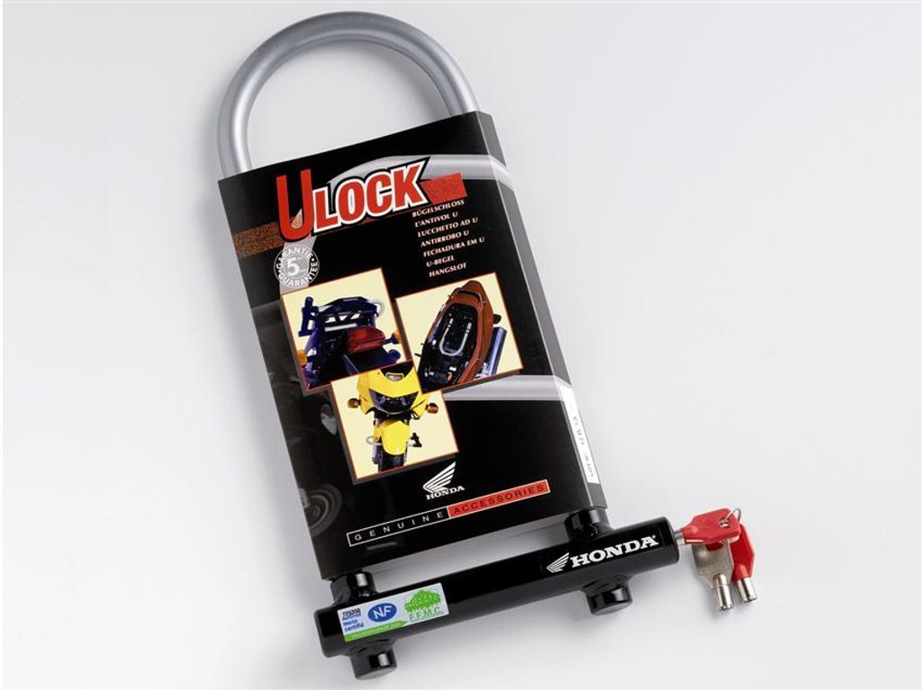 Vysoce bezpečnostní zámek ve tvaru U vyrobený z kalené speciální oceli. Diskový zámek s ochranou proti odvrtání a zloději.