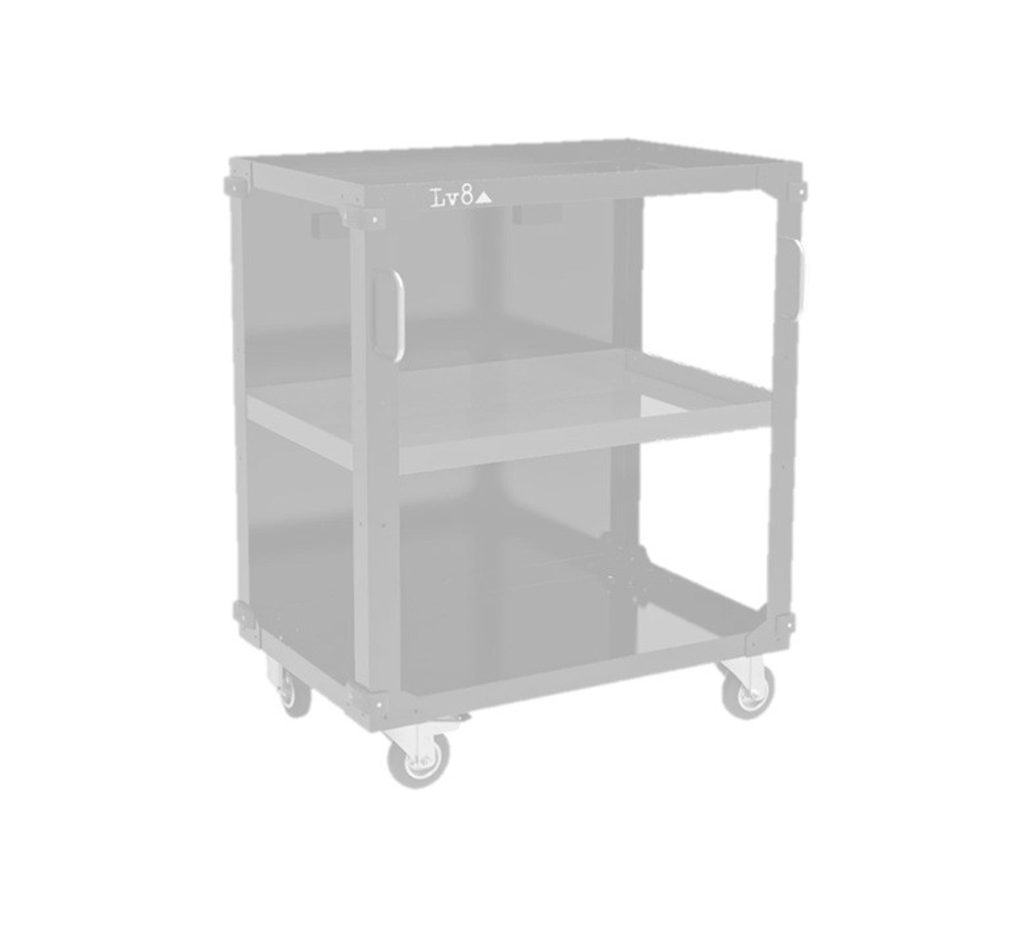 Podstolní vozík délky 800 mm se třemi policemi. Lze jej integrovat pod naše pracovní stoly a je oboustranný – zadní panel zakrývá uložený materiál.