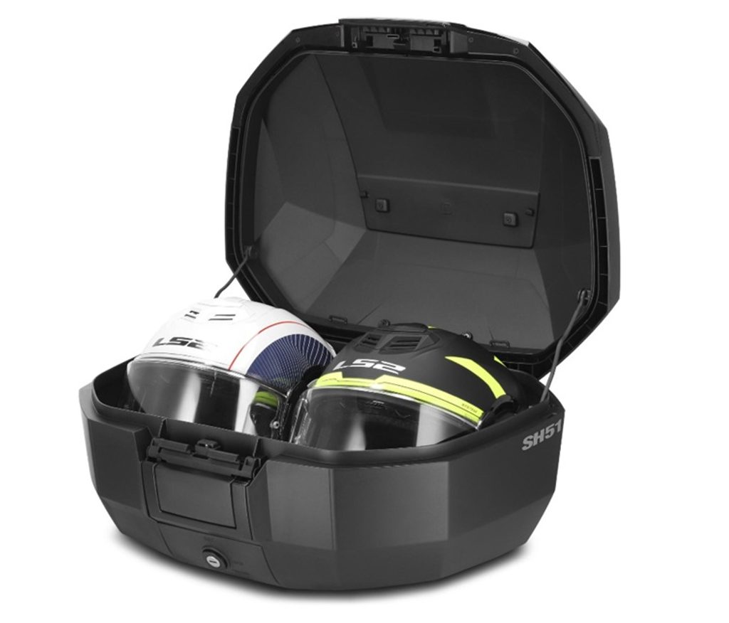 Nový kufr SH51 je ideálním doplňkem k rozšiřitelnému bočnímu kufru SH38X. Společně tvoří perfektní sadu pro dlouhé trasy, kdy potřebujete přepravovat velký objem nákladu.