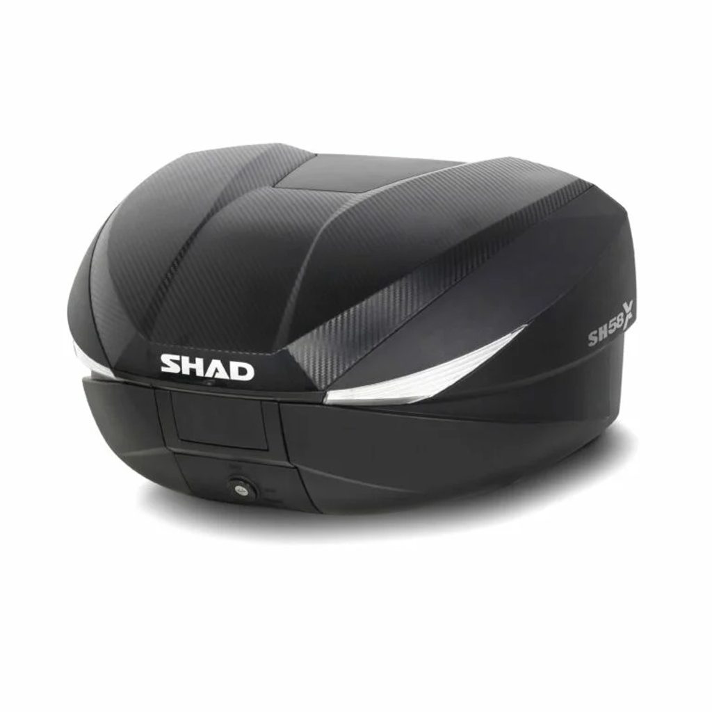 Vrchní kufr SH58X s karbonovou úpravou a s nastavitelným objemem ve 3 různých polohách (46, 52 a 58 litrů), má kapacitu pro uložení 2 XXL helem bez nutnosti položit je na bok, plus cestovní doplňky. Díky špičkové technologii a inovativnímu designu získal vrchní kufr SH58X prestižní cenu Reddot Design Award 2017, což je pojem mezi designéry a výrobci. Je to jediný vrchní kufr na trhu, který lze rozšířit až na kapacitu 58l a je tak vhodný jak na každodenní využití tak i na dobrodružné výlety, o kterých jste vždy snili. Je to vysoce všestranný vrchní kufr, který lze během několika sekund změnit z aerodynamického kufru na velký cestovní kufr. Jeho konstrukce zaručuje vysokou tuhost a odolnost při zachování minimální hmotnosti. Uvnitř má tento kufr přídržné popruhy, které zajišťují, že se vnitřní náklad za jízdy nepohybuje.