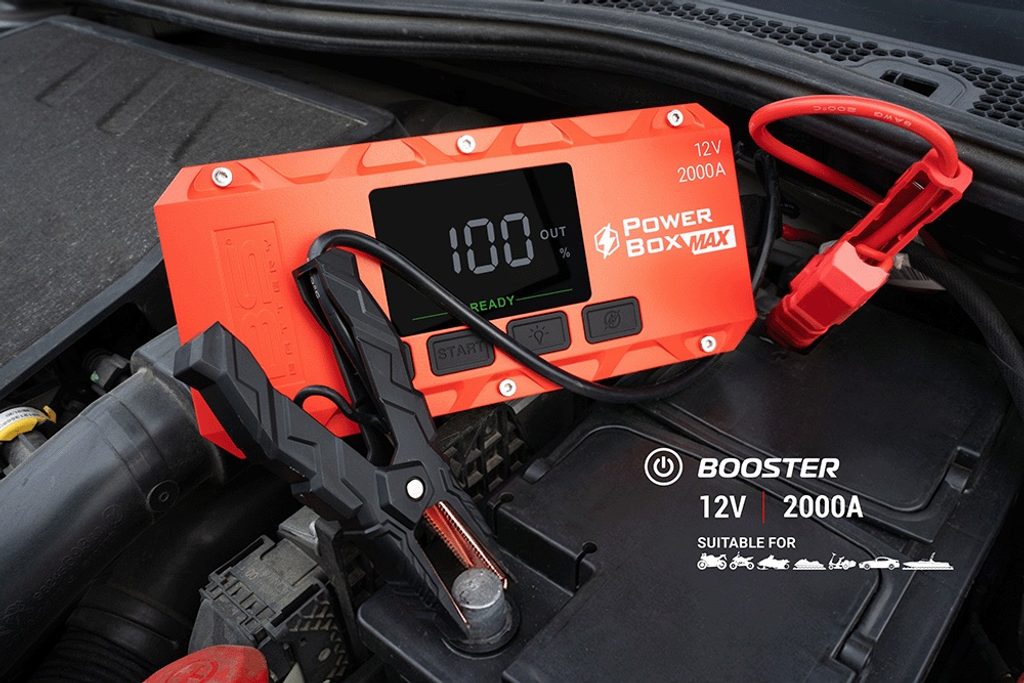 Je bezpečný a všestranný – je vybaven chytrými kabely s ochranou proti jiskření, ochranou proti přepólování, USB výstupy pro napájení zařízení, LED svítilnou se 3 režimy svícení a LCD displejem. Dodává se s kompletní sadou příslušenství a ochranným úložným pouzdrem.